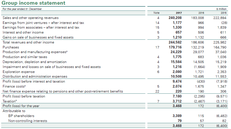 Bp income statement. BP Income Statement. Get the detailed quarterlyannual income statement for BP plc. Format Quarterly Annual etc Quarterly Annual TTM Semi Annual Quarterly YoY Growth Annual YoY Growth QoQ Growth 3 Year Growth 5 Year Growth 10 Year Growth Per Share Quarterly Annual Per Share of Quarterly Revenues of Annual Revenues.