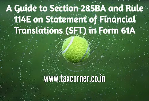 Annual Information Report- Sec 285BA 1 Rule 114E. Section 285BA of Income Tax Act requires specified reporting persons to furnish statement of financial transaction. In exercise of the powers conferred by section 285BA read with section 295 of the Income- tax Act 1961 43 of 1961 the Central Board of Direct Taxes hereby makes the following rules further to amend Income-tax Rules 1962 namely- 1.